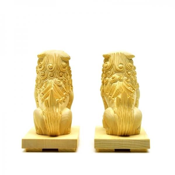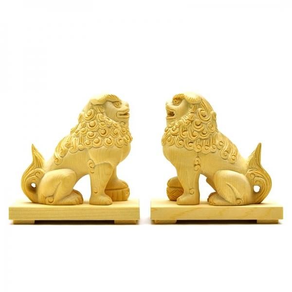 開運・魔よけ 木彫置物 【狛犬(唐獅子)阿吽セット】 桧木 総高10cm