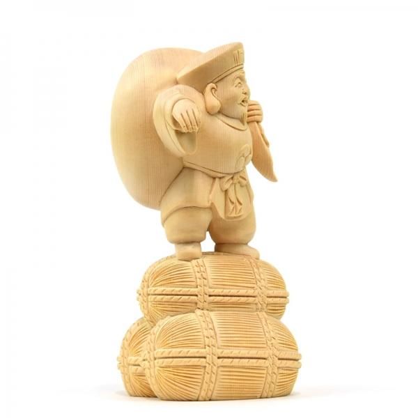 本品はその「招き大国様」像をもとに、立体的に彫り上げた作品です。