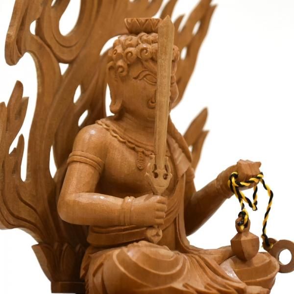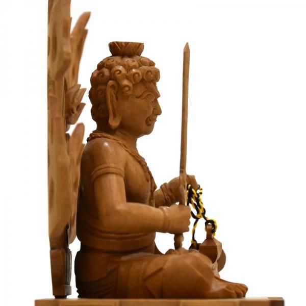 動かざる尊者という意味で、如来が教化しにくい衆生を救うために、見るからに恐ろしい形相をした姿で現れる。全ての災難苦難を除き、事故や災いから身を守ってくれる仏様と言われています。