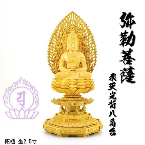 弥勒菩薩は、サンスクリット語で「慈悲から生まれたもの」という意味で、「慈氏弥勒」ともいわれます。広隆寺と中宮寺の半跏思惟像があまりにも有名なので、弥勒菩薩はすべて頬づえをつく姿だと思われていますが、実は印の組み方も姿もいろいろなものがあります。宝冠をかぶり、結跏趺坐して定印に組んだ掌の上に宝塔を置いている像も少なくありません。釈迦から、「悟りを開いて次の仏になるのは弥勒菩薩だ」と告げられ、釈迦入滅後56億年7千万年後に現れて人々を救うとされている菩薩で、「未来仏」として信仰を集めってきました。