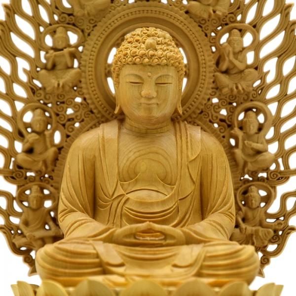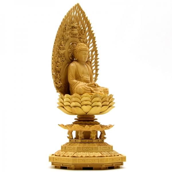 釈迦如来は仏教の開祖で、実在の人物であった釈迦を他の如来と同列にとらえたものであるが、その生涯の仏伝に対応してさまざまな像が造られている点は特徴的である。一般的な釈迦如来像は、施無畏・与願印、法界定印を結ぶものが多く、時に説法形の転法輪印が見られる。単独像以外に三尊も造られ、その折は獅子に乗る文殊と象に乗る普賢の両菩薩を脇侍とするものが多い。