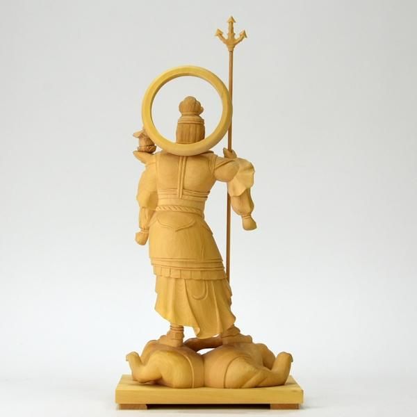 また、密教においては十二天の一尊で北方を守護するとされる。また日本独自の信仰として七福神の一尊とされ、特に勝負事に利益ありとして崇められる。