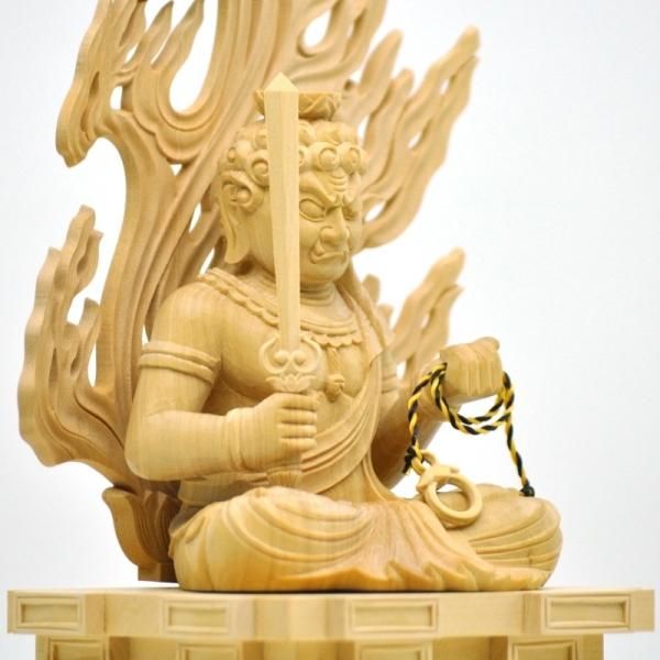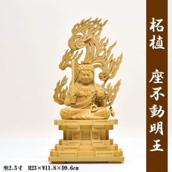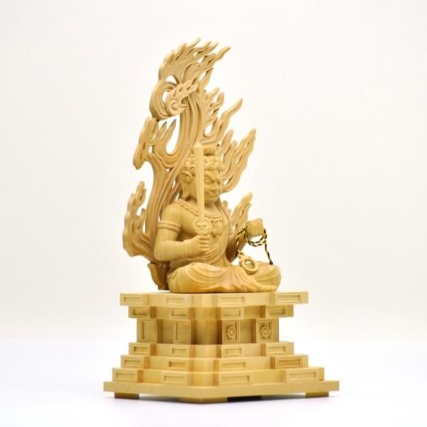 動かざる尊者という意味で、如来が教化しにくい衆生を救うために、見るからに恐ろしい形相をした姿で現れる。全ての災難苦難を除き、事故や災いから身を守ってくれる仏様と言われています。