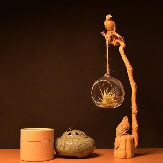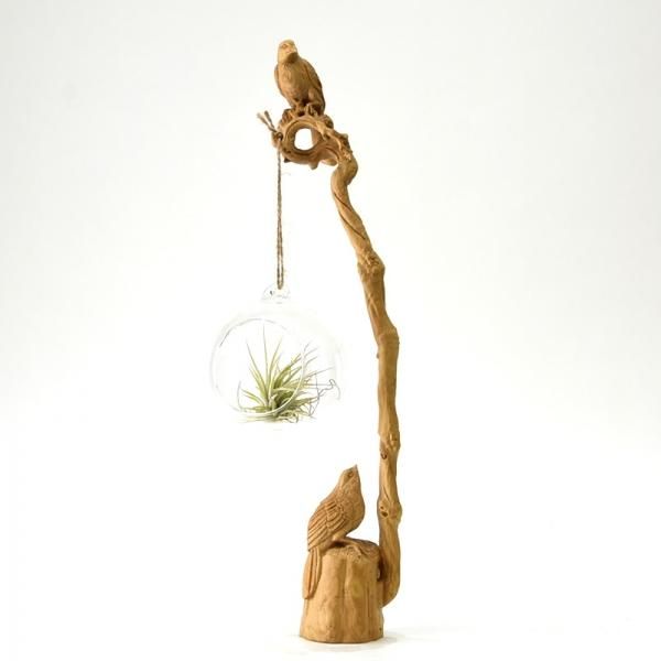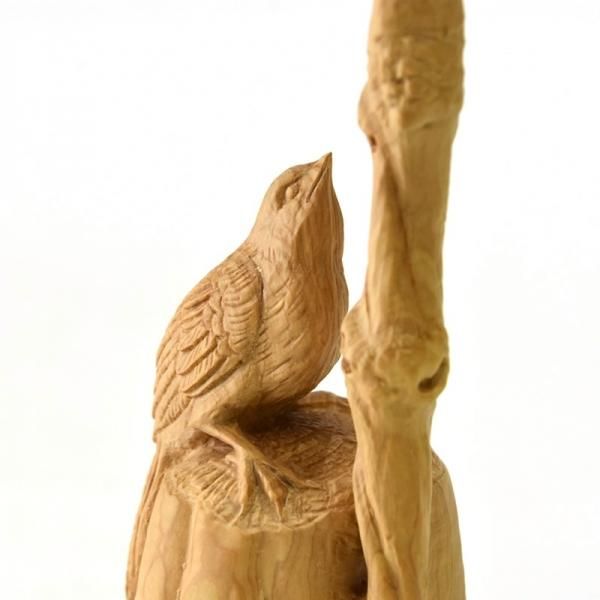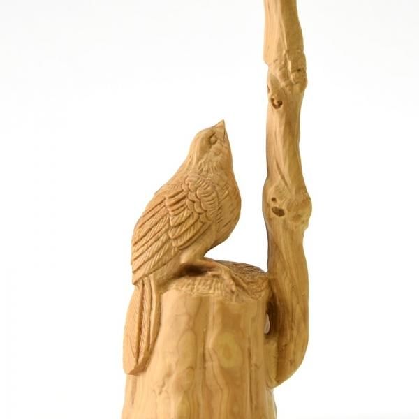 柘植置物 鶯(ウグイス) 総高34.5cm