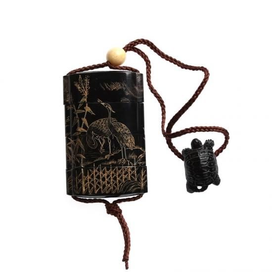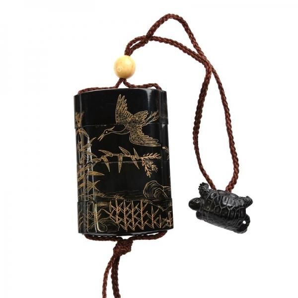 【印籠(いんろう)】 水戸黄門などでおなじみの印籠は、戦国時代に武士が携帯用薬入れとして戦陣で用いるようになったものが現在の原型と伝えられています。江戸時代になって、町人も持ち歩くようになりました。中に薬など、常備するものを入れていたそうです。侍の正装に印籠は欠かせないものだったらしく、現代では本来の用途とは別に、衣装に凝った瀟洒なもの、恵比須・大黒・鯉(恋)などを彫り込んだ縁起物として作られるようになりました。