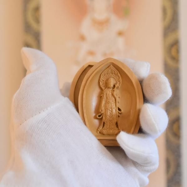 観音菩薩・観世音菩薩・観自在菩薩とも呼ばれます。 観音菩薩には、千手観音や十一面観音などさまざまな姿がありますが、人間と同じ1つ顔に2本の手という一面二臂の像が基本的で、これを『聖観音』と呼びます。阿弥陀如来の化仏(分身)のついた宝冠をかぶり、蓮華や水瓶を持つのが一般的です。「観世音」とは、世の中の人々の救いを求める声に耳を傾け、それを聞きとるという意味、また「観自在」とは自由自在に人々の声を聞いて助けるという意味です。 観音菩薩の最大の特徴は、現世利益にあります。弥勒菩薩は気の遠くなるような未来にしか現れてくれませんし、釈迦はもうこの世にはいない過去の存在です。そこで、どこにでも現れて苦しみあえぐ衆生を救ってくれるという観音菩薩の人気が一気に高まったというわけです。 初七日から三十三回忌までの法事に一体ずつ仏をあてはめることを十三仏事といいます。観音菩薩は【百ヵ日】にあてはめます。