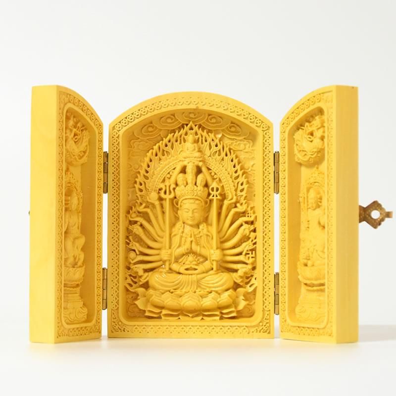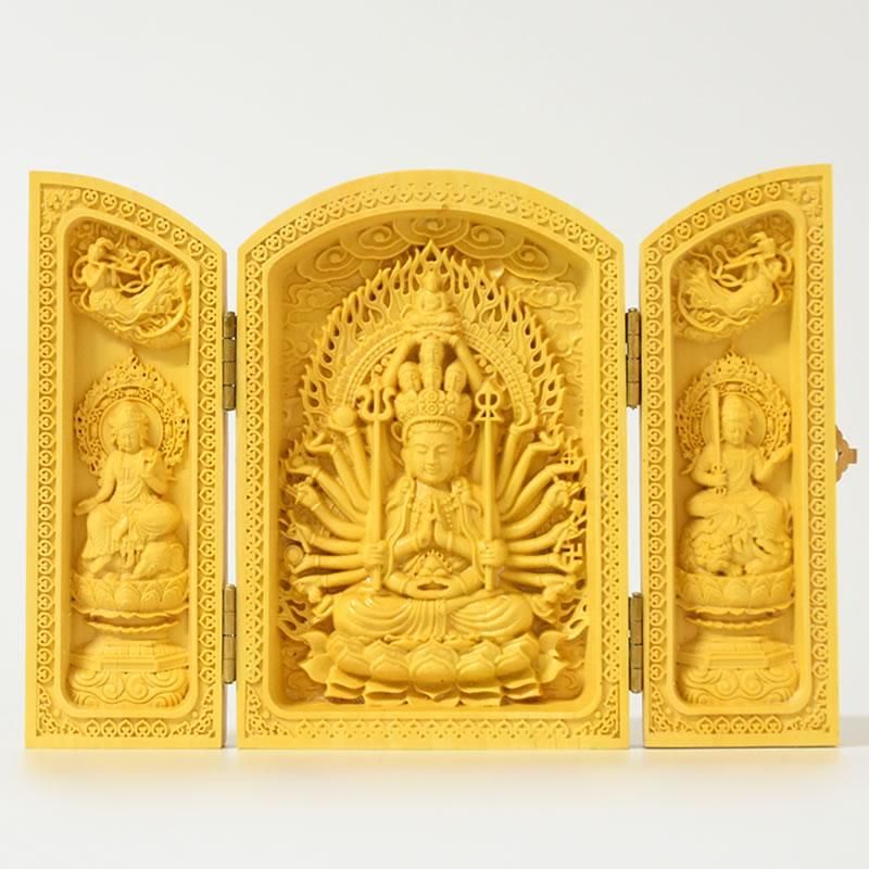 千の慈眼と千の慈手で、延命・滅罪・除病などの功徳をもって一切の苦悩を救いとり、すべての願い事を叶えて下さる仏様と言われています。