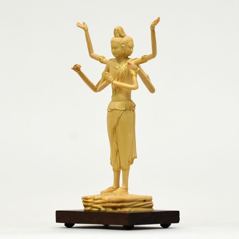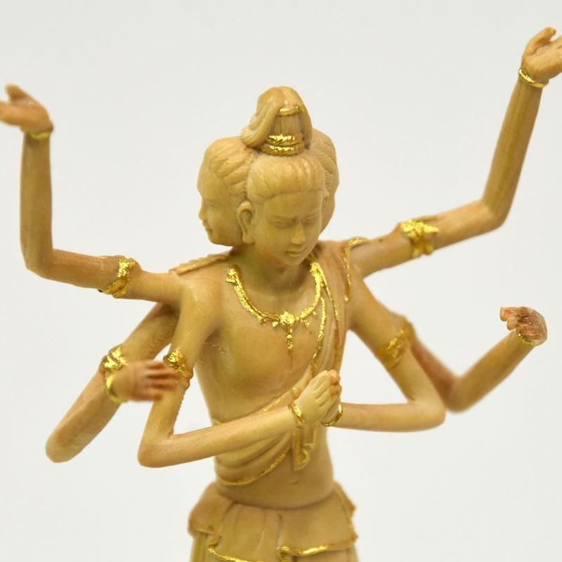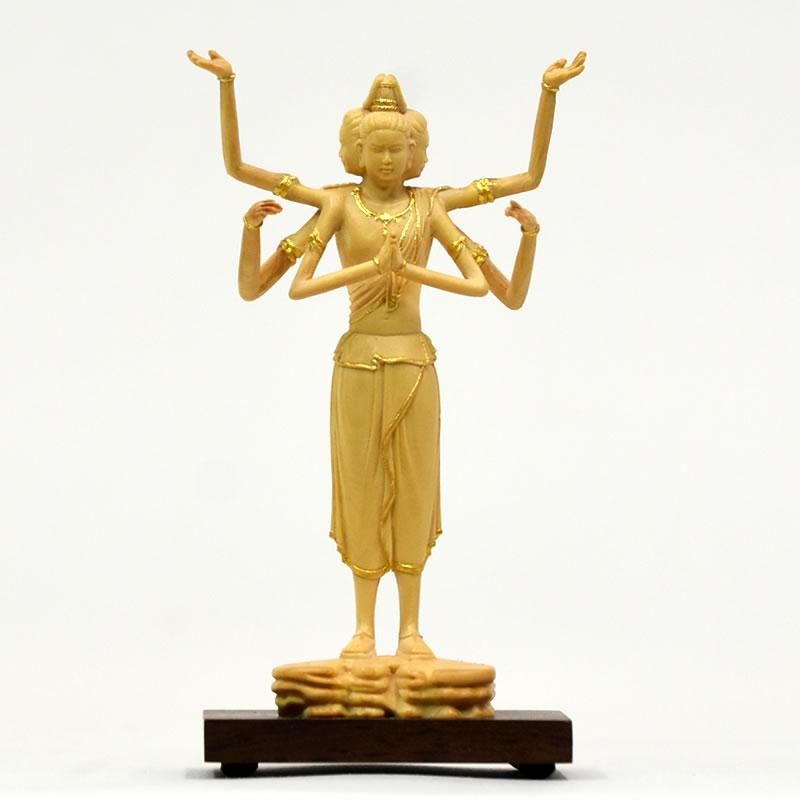 なお、奈良・興福寺蔵の阿修羅像(国宝)は三面六臂で、巧妙な手の配置、愁いを含む表情で表される天平彫刻の名作です。