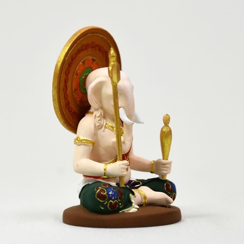 古代シヴァ神の子で、象頭人身のガネーシャ(毘那夜迦王)という粗暴で邪悪な魔神が、人々に害を及ぼしていました。そこで十一面観世音菩薩は、象頭人身の女天(ビナ-ヤカ女神)に化身してガネーシャを誘い、仏教に帰依することを誓わせた上で、和合・合体して、この神の暴悪を鎮め(調伏し)ました。以後、ガネーシャは、善神となり、歓喜天・聖天と呼ばれ、仏法の護法(守護)神となったとされます。一般に、象頭の女天と男天が抱擁している二天一体の双身像と象頭人身の単身像の2つの姿の形像が多いが、稀に人頭人身の形像も見られます。
