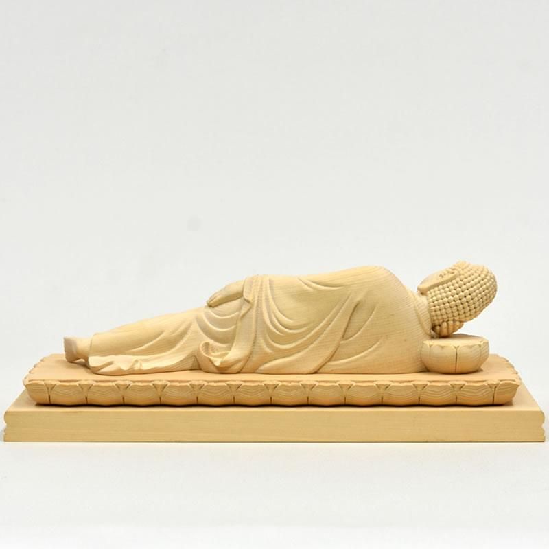 釈迦が入滅する様子を仏像としてあらわしたもの。寝仏、寝釈迦像、涅槃仏とも呼ばれ、釈迦入滅の様子を描いた絵画を涅槃図と呼び。ほとんどの像容は右手を枕とするか、もしくは頭を支える姿である。基本的には、頭は北向き、顔は西向きとされる。これが後に、一般の俗人が亡くなった時に「北枕」とされる由縁となった。