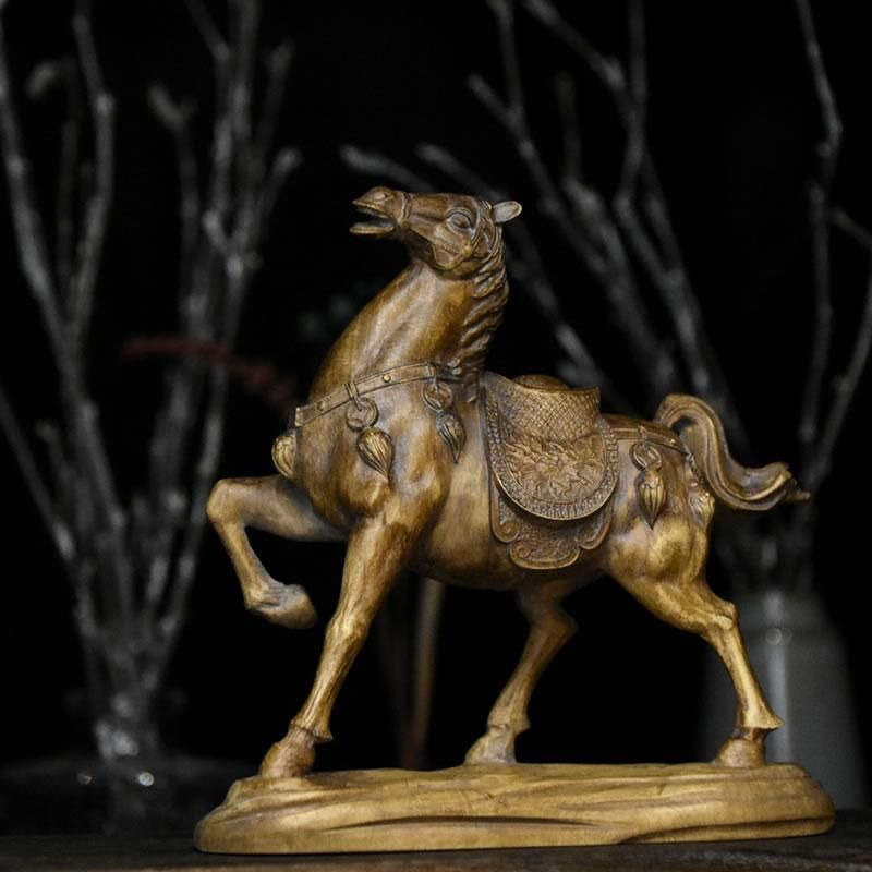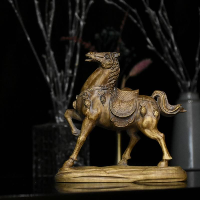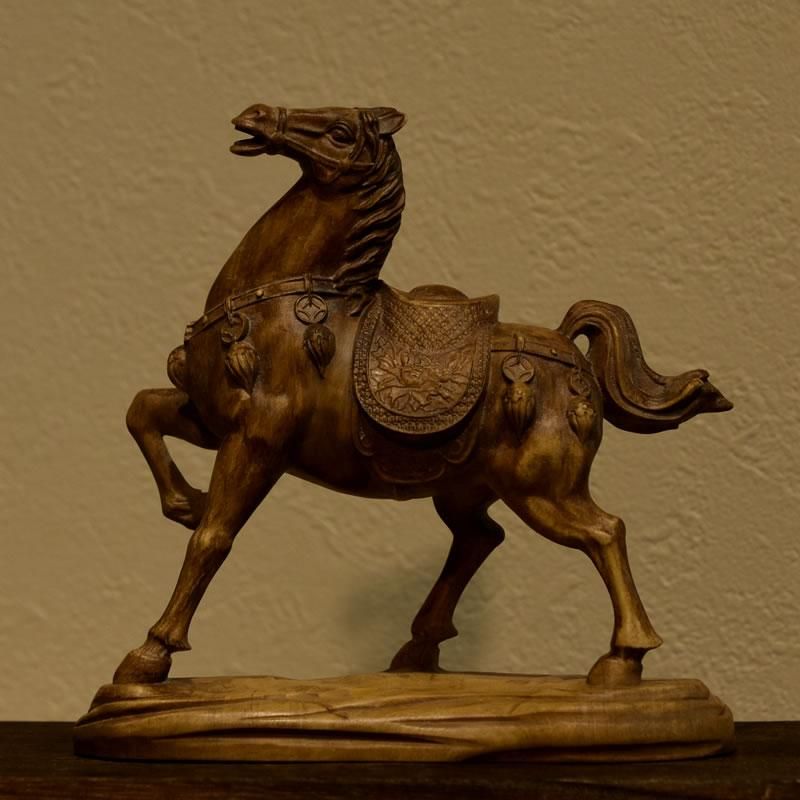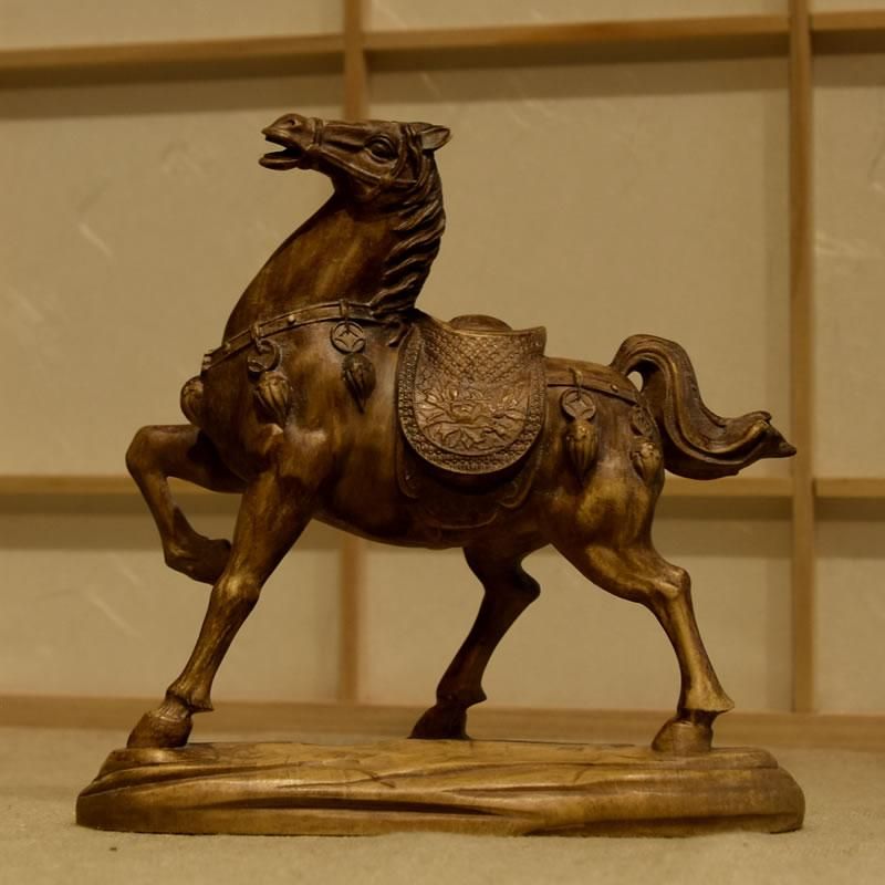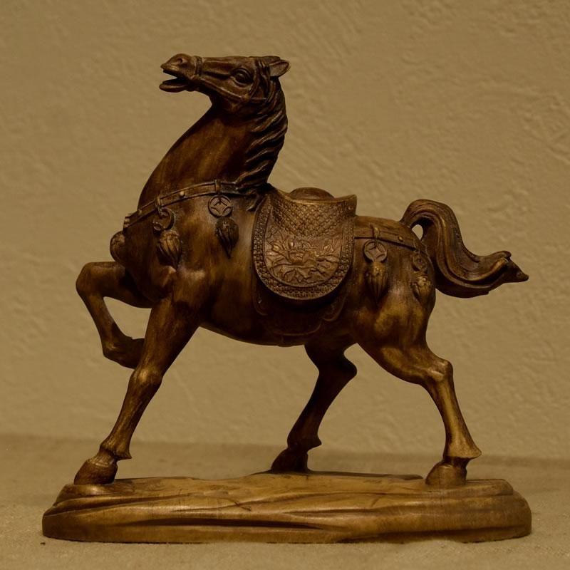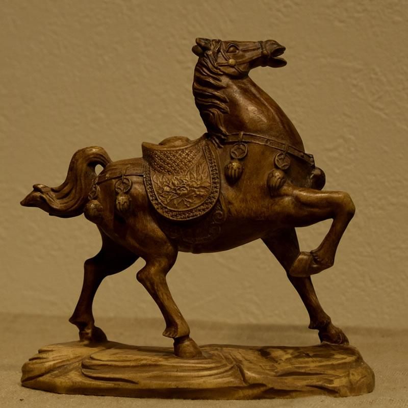 柘植置物 『馬』 高12cm 時代色