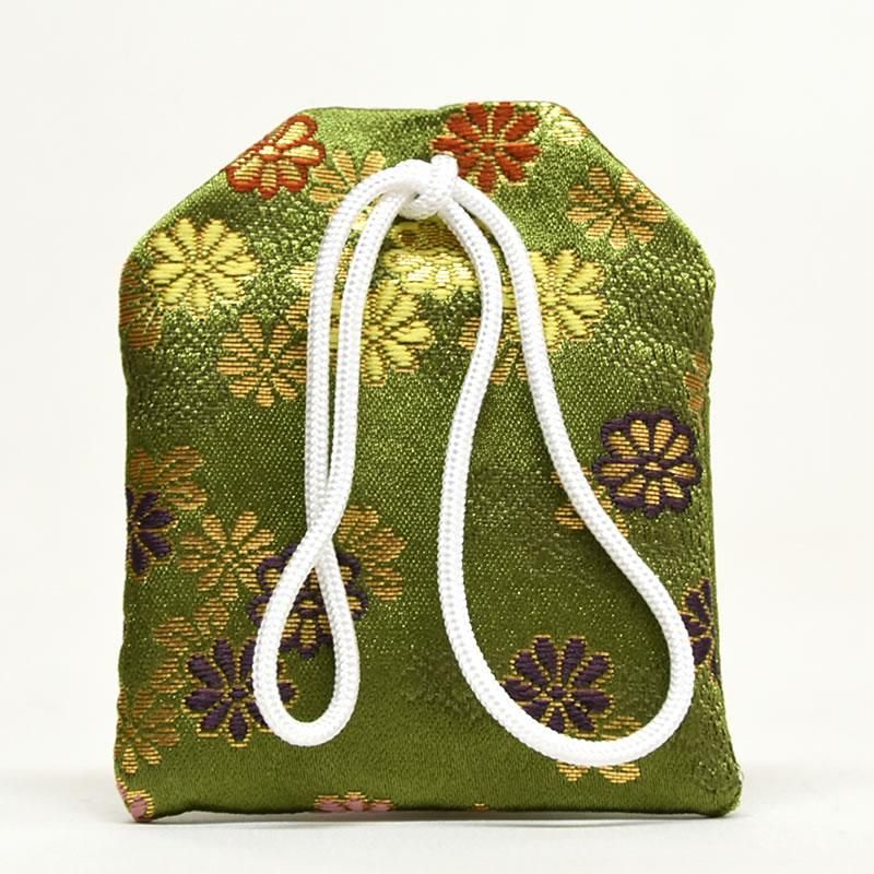 日本製【金襴袋-緑】 懐中仏・香合仏用 縦8.5cm×幅7cm